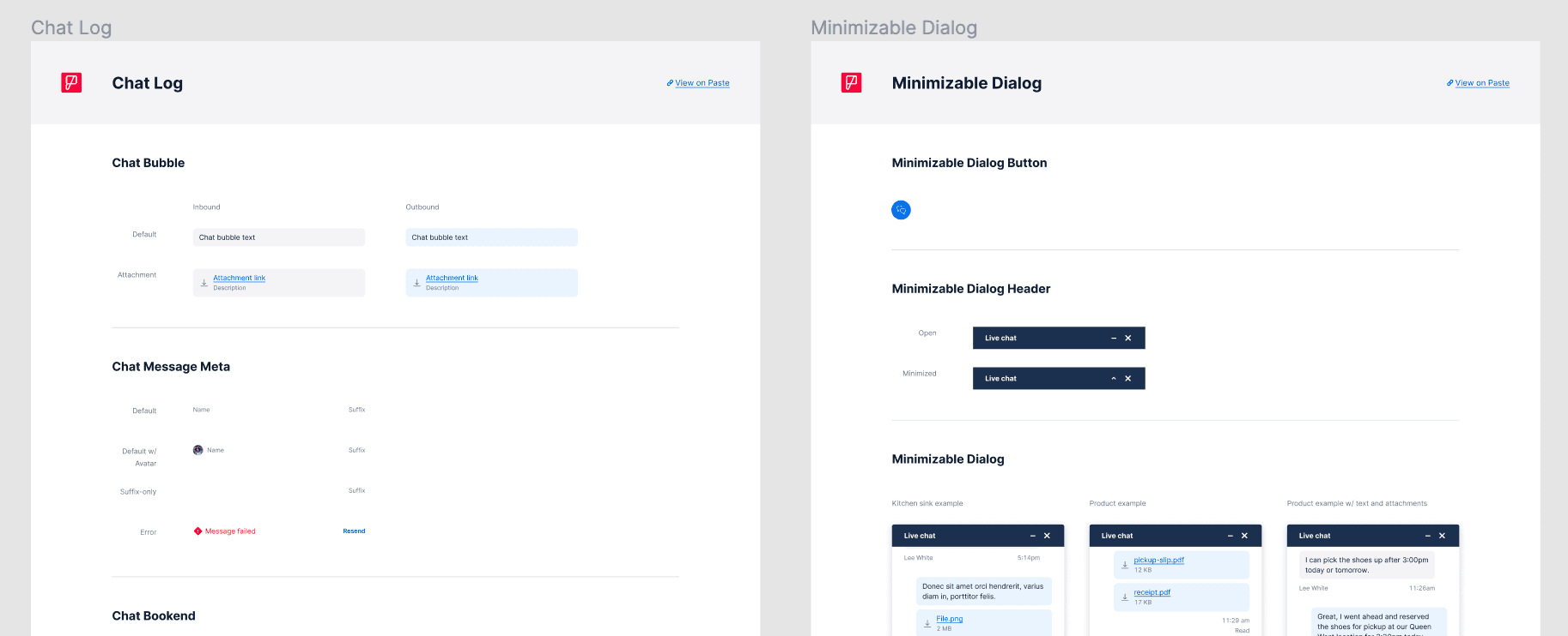 As part of our Conversations UI kit, we've added the Minimizable Dialog component. Its power lies in its flexibility; use it with a static button, a floating button, or use its included state hook for full control of its internal state. Making a chat log has never been easier with Paste.