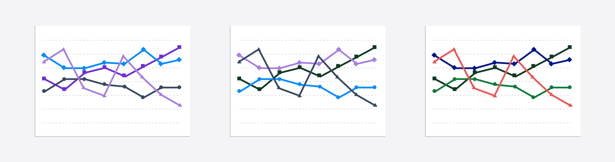 In the following sections, we’ll detail each palette we recommend using for your data visualizations and how you should be using them. You can also reference all the data visualization color palettes on our Design Tokens page.